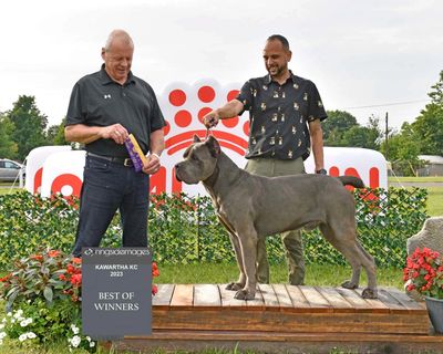 Goliath achieved his championship title Aug 5-7th weekend at the CKC Springwater event to remember at the Barrie Kennel Club multiple BOB ( Best of breed wins ) along with a 2nd & 4th group win in large working group! 77 dogs and 15 breeds making Goliath #1 Cane Corso in Canada!!. We finished off our year placing #2 in Canada WOW! Im so proud of this boy! We are continuing now towards our GCH Title.